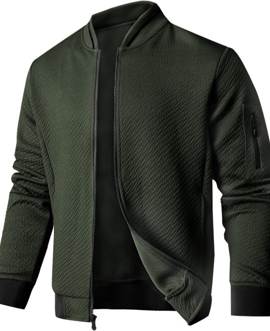 Mens Lightweight Bomber Jackets Stand Collar Windbreaker Softshell Jacket Zip Up Coat for Fall Outdoor