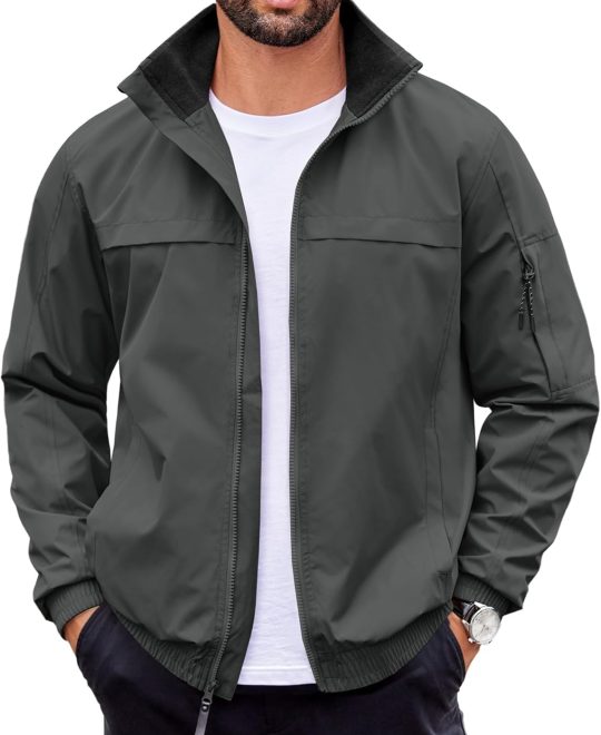 Men’s Lightweight Softshell Jacket Fleece Lined Waterproof Tactical Rain Zip Up Winter Coat Windbreaker Casual