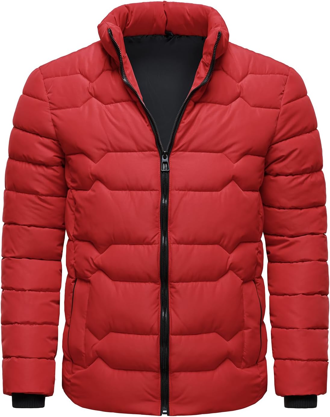 Mens Puffer Jackets Lightweight Warm Winter Coats Stand Collar Full Zip Windproof Insulated Jacket